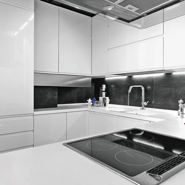 La finitura PU bianca 218-9005/95 realizzata per l’arredamento di interni, è esente da sostanze chimiche aromatiche e caratterizzata da eccellente copertura, ottima distensione, rapidità di essiccazione. Può essere applicata sia a velo che a spruzzo automatico, direttamente su carta melamminica carteggiata. E’ caratterizzata da una mano morbida e scivolosa. Grazie all’assenza di sostanze chimiche aromatiche il prodotto non presenta in etichetta il pittogramma di rischio di tossicità a lungo termine. La carta melamminica deve essere carteggiata con carta di diversa finezza, fino alla 600. Su supporto carteggiato accuratamente la prima mano può essere anche di 200-300 gr/m². Accatastabile già dopo 2-3 ore a 20°C. Il ciclo di verniciatura è composto da finitura 218-9005/95 + catalizzatore 812-20 al 100% + diluente 922-03 al 30-70%. La rapidità di essiccazione rende possibile un sistema lucido rapido con ottima copertura e corpo. L’eccellente adesione conferisce resistenza agli urti, le buone resistenze chimiche resistenza ai liquidi freddi e l’ottima durezza superficiale resistenza al graffio.